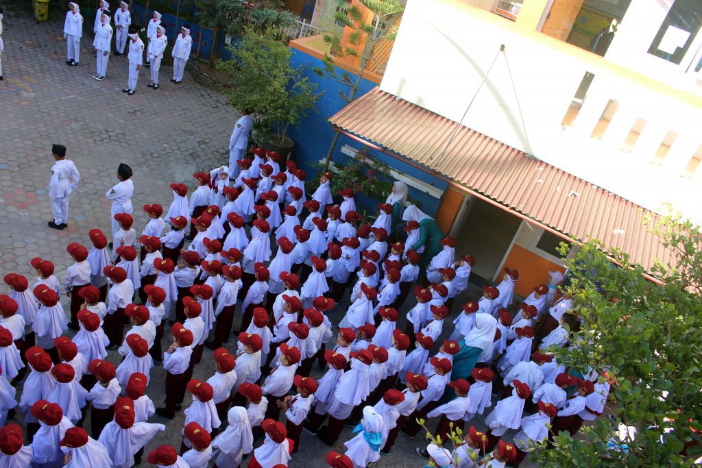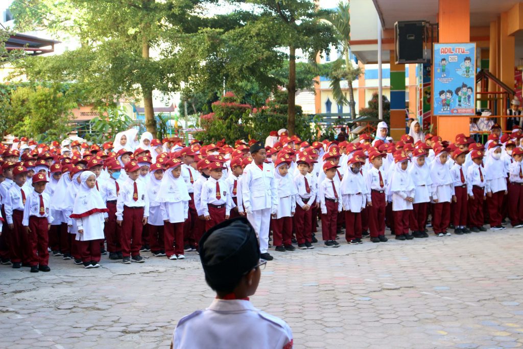 (senin, 18/07/2022), Hari ini anak kita melaksanakan upacara bendera perdana di tahun ajaran baru 2022/2023. Upacara tersebut berjalan dengan khidmat. Anak kita yang menjadi petugas upacara merupakan tim pocil sekolah yang telah dilatih oleh teacher yang bertanggung jawab melatih tim pocil sekolah, dan yang menjadi pembina upacara tersebut adalah kepala sekolah.