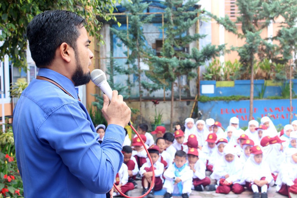Setelah ustadz heri selesai, kegiatan dilanjutkan oleh ustadzah Fadhila, S.Pd bersama anak kita membacakan shalawat nabi lalu kegiatan dilanjutkan dengan ustadz Darmansyah AS, S.PdI dengan menyampaikan kultum tentang sejarah hijriyah kepada anak-anak kita.